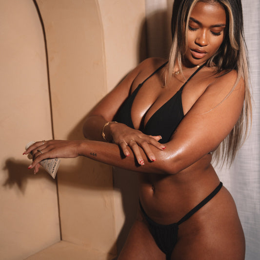 Coconut oil is deeply hydrating and rich in skin-loving fatty acids, making it perfect for nourishing and protecting your skin during tanning. It helps lock in moisture, enhances skin softness, and creates a smooth, glowing finish. It supports a more even, longer-lasting tan and prevents peeling or dryness after sun exposure.