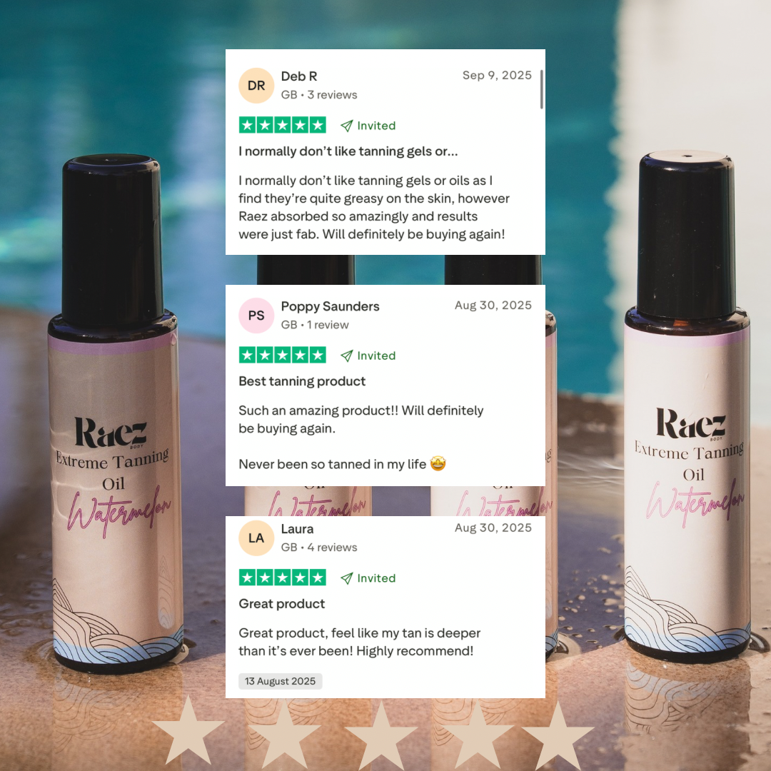 Apply our tanning oil evenly to the body and watch as you get the darkest tan ever!